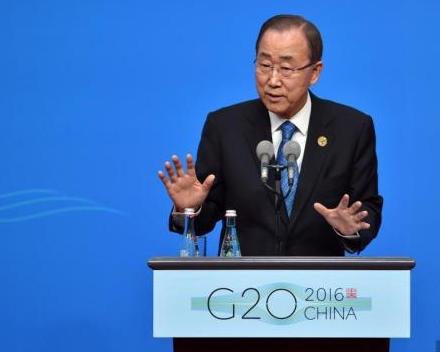 2016年11月15日,摩洛哥马拉喀什,潘基文在联合国气候大会上发言。