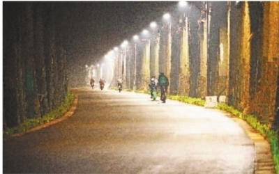 这是即将启用的东湖绿道首次全线亮灯。武汉晚报记者昨天在梨园附近的“湖中道”上看到,欧式庭院风格的黑色路灯杆与今年杭州“20国峰会”以及改造后的中山大道是同款,灯光呈现出暖融融的浅黄色调,令人有一种如同回到家中的亲切感。武汉供电公司武昌配电运检室副主任黄鹤飞介绍,整条东湖绿道上共布设了1280盏路灯,全部使用了100瓦的节能灯泡,尽管数量比以前增加了,耗电量却少了近一半。路灯杆还集成了视频监控的功能,令市民在享受幽静时光的同时,人身安全也很有保障。