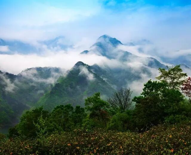 它远离喧嚣,植被茂盛,生态良好,环境清幽,堪称天然氧吧。天柱山极顶,置身云端,俯瞰千障,群山拱抱,云蒸雾绕,千山万壑,尽收眼底。