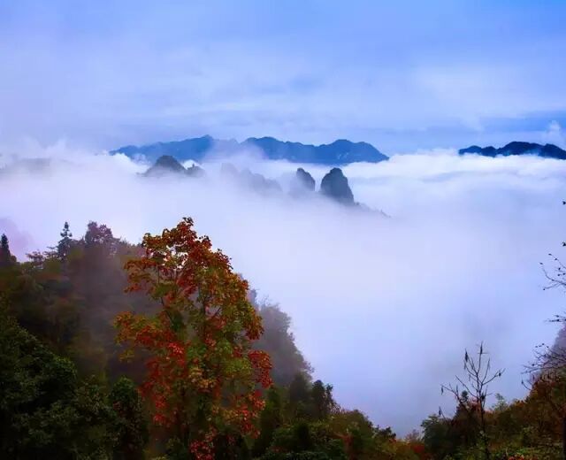 它与武当山南北辉映,为道教名山,亦名中武当。天柱山海拔1445米,它石笋高标,孤峰峙立,拔地耸立,有健笔凌云之势。峰顶平坦,有清泉一眼,四季长流不涸。