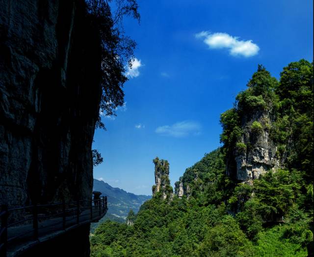方山石林就位于长阳天柱山脚下,景区内修有多处栈道,因而人们也形象地称呼这里为“梯子寨”。深山里随处可见小瀑布,流水潺潺,是大自然的声音。