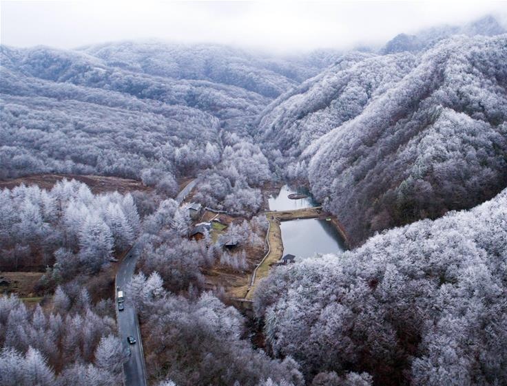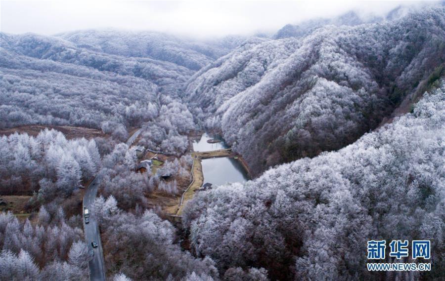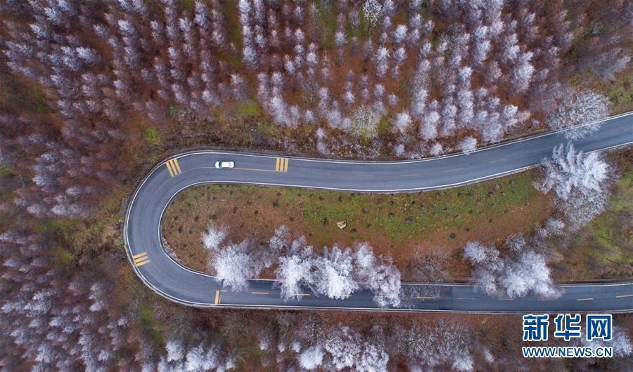 连日来,湖北省神农架林区普降小雪,雪后的森林银装素裹,美不胜收。这是12月25日航拍的神农架林区雪景。(柯皓 摄)