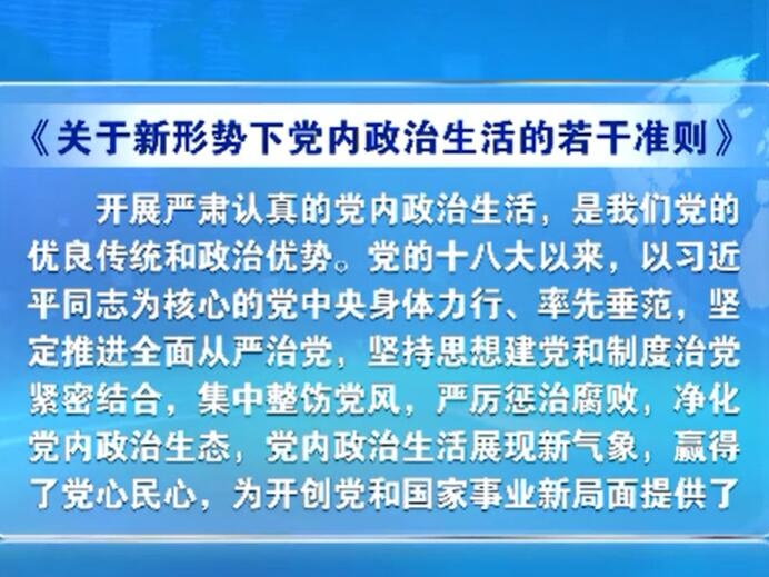 他指出,十八届六中全会审议通过的《准则》,是管党治党的重要基础性法规。我们要认真学习贯彻《准则》,在党内政治生活的“熔炉”中锤炼坚强党性,永葆先进性和纯洁性。