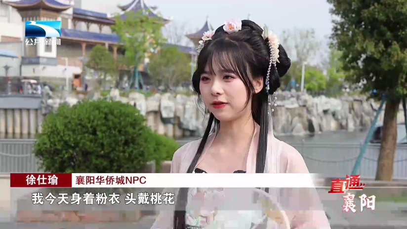 襄阳华侨城NPC 徐仕瑜:“我今天身着粉衣,头戴桃花,代表的就是十二花神中的三月桃花神,我也很高兴可以在春暖花开的时节,穿古风服装,来演绎中国传统文化。作为现代年轻人,我们希望可以通过这些文化元素,传播我们中华优秀传统文化,也让更多人感受到传统文化的魅力。”