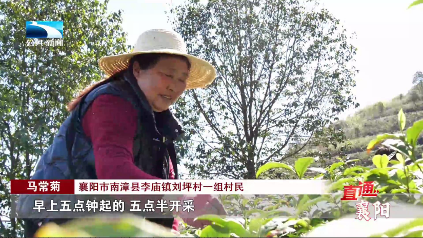 襄阳市南漳县李庙镇刘坪村一组村民 马常菊:“采摘明前茶要抢时间,早上五点钟起的,五点半开采,手要快、眼要快、腿也要快,一天采两斤多,卖个百把块钱。”