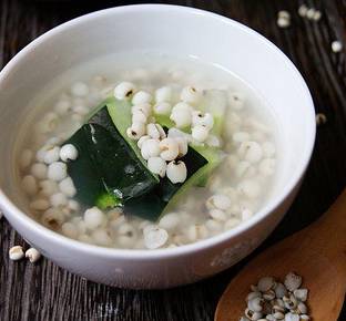 做法:首先将薏米以及百合清洗干净并且用清水浸泡一会,然后放入锅中和清水一起煎煮,直到薏米煮烂后根据个人的口味加入适量的蜂蜜或冰糖,搅拌后就可以直接起锅服用了。