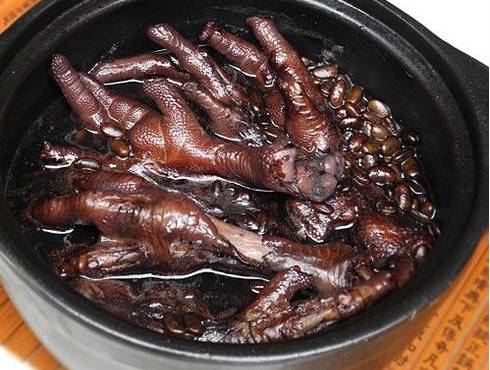 做法:将鸡爪清洗干净后放入开水冲烫透,绿豆以及黑豆都清洗干净,然后三种材料一起放入锅中和清水一起煎煮,大火烧开后小火慢炖直到豆子煮烂,最后加入食盐调味就可以了。