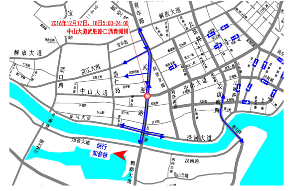 为缓解路口的交通滞留程度,提高路口其他方向的通行能力,武昌区交通大道经过研究,拟从2017年1月4日起,对武车路和平大道往友谊大道方向的车流进行调整,武车路进入友谊大道路口(西向东方向):禁止左转与直行,需左转和直行车流一律在路口右转行至沙湖立交桥下专用掉头车道通行。从而减少路口信号灯周期,延长友谊大道双向通行时间,提高通行效率。