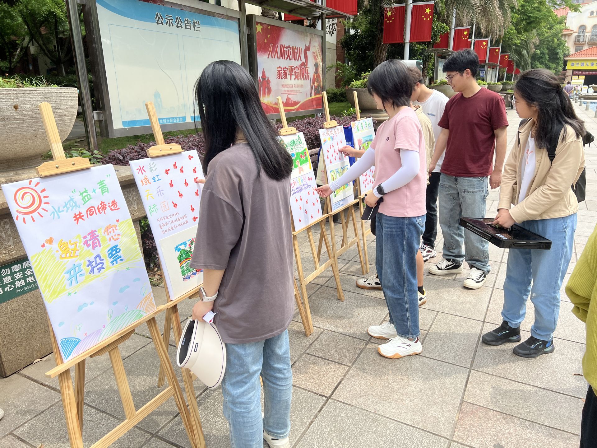 吸纳群众意见、不断优化改造细节,投票选出居民自己最喜爱的方案 。随后,水域“益+青”志愿服务队队员们对绘制出的公共空间改造的手稿设计图进行现场展示,往来的居民踊跃发言,表达了对场地空间改造的创意想法和期望,共同完成空间改造投票征集环节,为改造方案设计出谋划策。参与投票的王阿姨说:“我很喜欢这个设计,让闲置空地华丽变身休憩、健身、活动、晾晒和有序停车的多功能场所,我投一票,期待建成后的小区美丽景象。”最终,“童趣园”以高票评得“我最喜爱的改造”,下一步社区将参考方案启动改造,让空间焕发新活力。