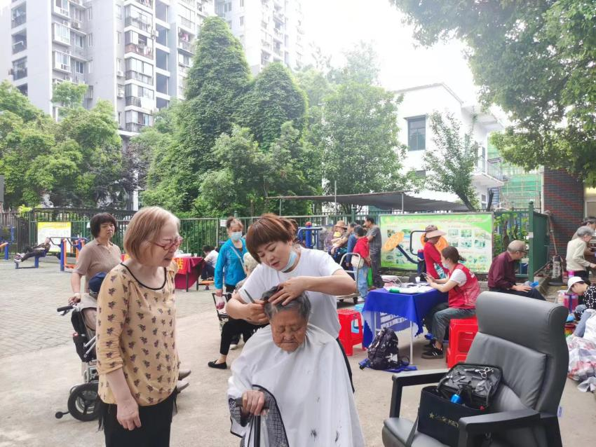 温馨邻里情。4月26日上午,古四社区携手犇佳长乐康园居家养老服务中心开展公益集市活动。一大早,磨刀、擦鞋、理发、口腔咨询、血压测量等服务项目就吸引了不少居民前来,小区休闲广场顿时成为“爱心服务角”。活动现场还涌现了不少邻里一家亲的温情场景,行动不便地李爹爹被邻居推着下楼来参加活动,轮椅上不了台阶,志愿者特意走到小区大门口为老人理发;赵奶奶双目失明,好心的邻居扶着她来参加爱心义诊,喝上一杯酸梅汤。“余婆婆,您开心吧,酸梅汤也喝了,头发也剪了,血压也量了,艾灸也体验,您可是一样都没少啊!”“开心开心,我是全程参与‘选手’”幽默的话语引来大家哈哈大笑。