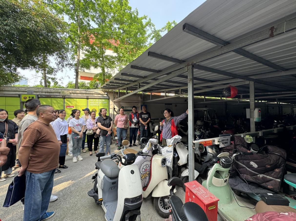 “保利香槟国际小区居住人口多,越来越多的居民采用电动车出行,这个停车棚内越来越拥挤,很多居民反映充电桩完全不够用。”大家跟随博学社区工作人员来到保利香槟国际小区电动车棚前,实地观摩听她讲解如何解决小区电动车停车充电难问题。针对小区目前最“急难愁盼”的问题,博学社区在谋划“开年一件事”时以此为切入点,通过实地查看、入户走访,深入摸排小区停车棚使用情况,线上线下征集居民意见,多次组织召开协商议事会,征求消防、电力等相关单位专业人员建议,最终决定将小区电动车棚电路重新布置,增设升级充电装置,并安装球状烟感器。运用科技赋能安全监管,实现24小时动态监测电动车停车棚安全,以办实事成效凝聚民心,以解难题成果汇聚民力。大家边走边看、边学边思、热烈交流、收获满满,达到了现场交流、互学互鉴的良好效果。
