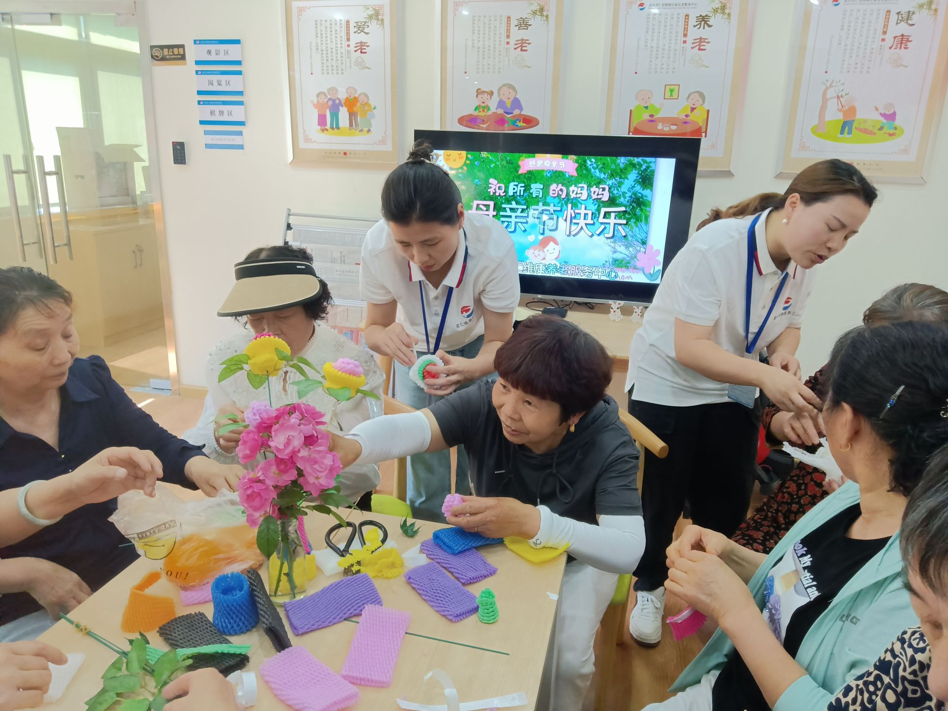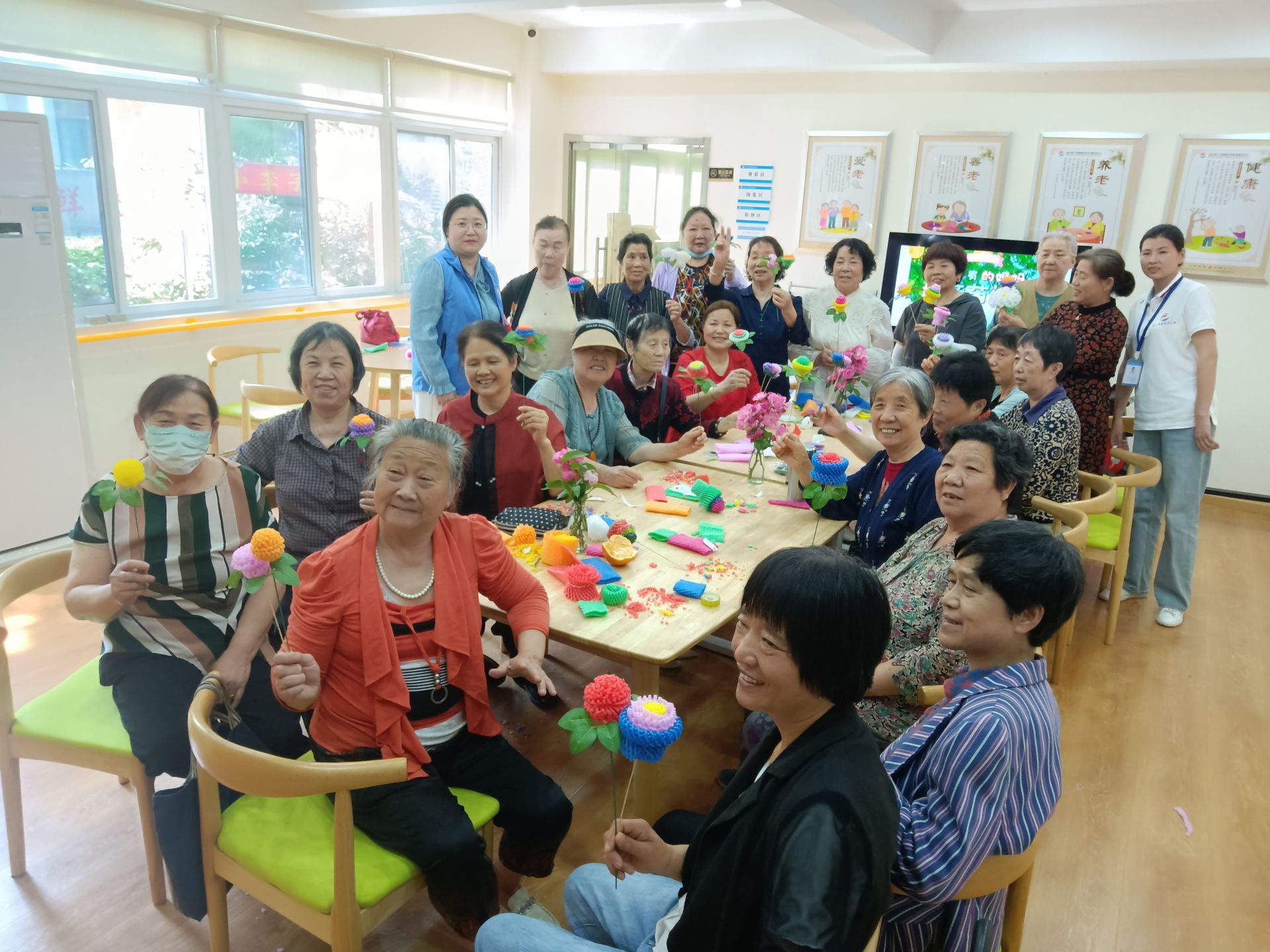 活动结束后,老人们纷纷拿着自己制作的手工花儿合影留念,每一张脸都绽放着幸福的笑容。