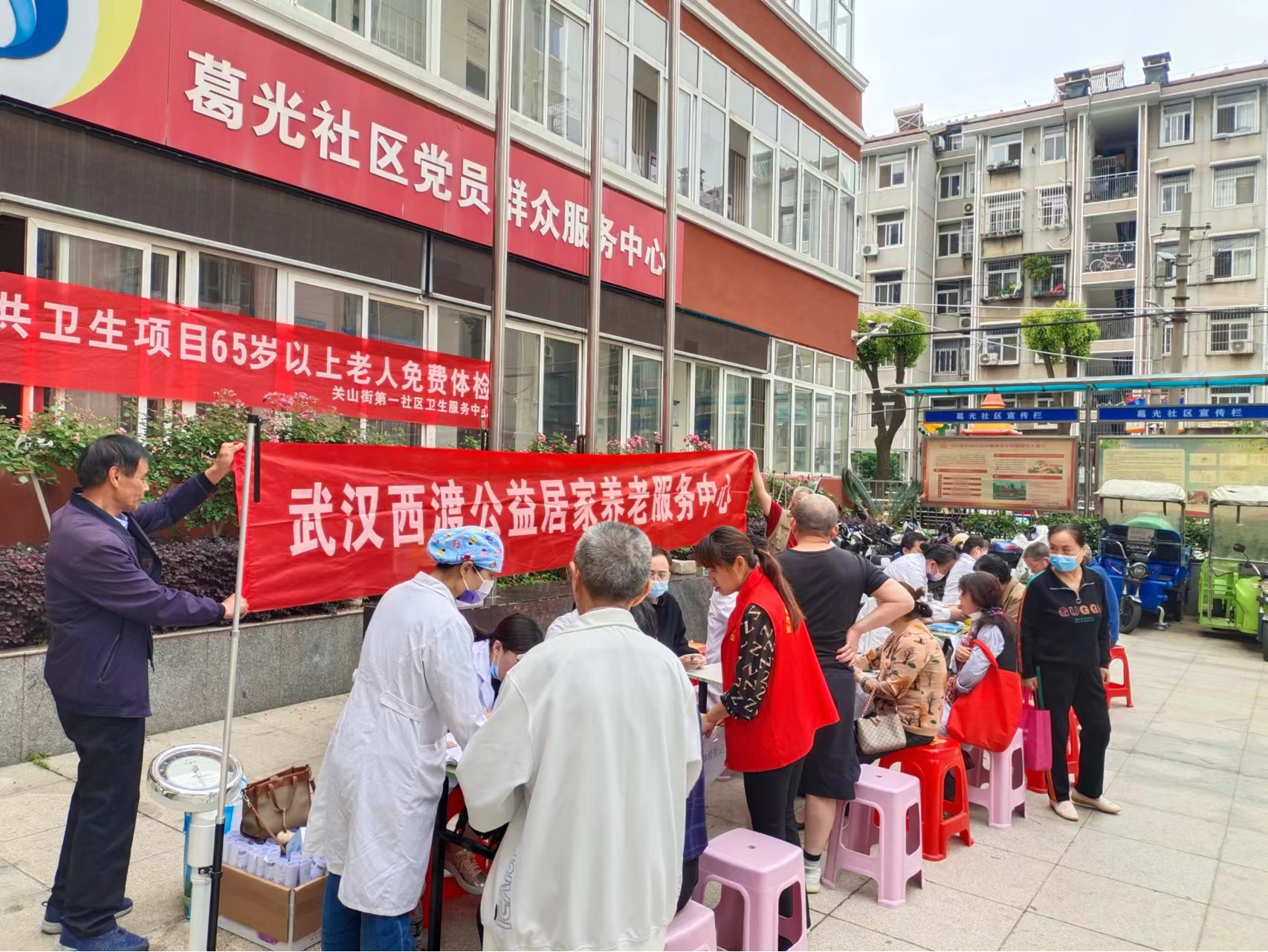 为进一步提高老年人健康水平,掌握老年人健康状况,切实做到有病早发现、早治疗,武汉市洪山区关山街道葛光社区居家养老服务中心特别邀请关山第一医疗服务中心于5月9日、10日上午在葛光社区小广场及社区二楼为老人免费体体检服务,武汉西渡公益志愿者全程参与协助。