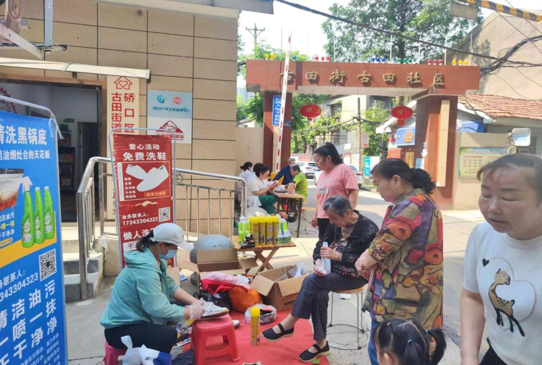 在母亲节到来之际,5月10日上午,硚口区古田街道古田社区携手养老服务站链接多方资源以特别的爱送给母亲开展活动。社区邀请了仁爱医院的医生走进古田为辖区广大母亲们提供惠耳听力义诊、测量血糖和血压等服务;邀请了大学生志愿者为社区的母亲们开展洗鞋、磨刀、义剪等服务活动。