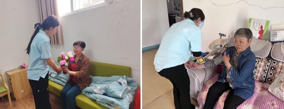 不仅有温馨聚会,社区工作人员也以节日为契机开展“爱在社区 情暖困难母亲”入户走访慰问活动,每到一户母亲家里,社区志愿者询问近况,送去慰问品并帮助其收拾家务,打扫卫生,测量血压,以实际行动为辖区10位困难母亲送去贴心的问候与节日的祝福。