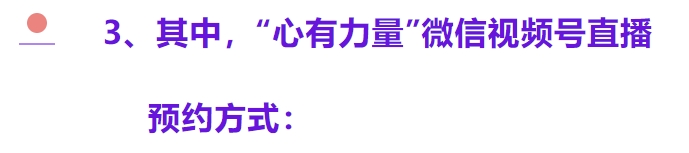 ①微信搜索“心有力量”视频号,点击“预约”按钮即可预约。(直播前会收到直播提醒通知)