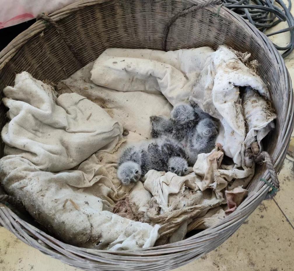 经过仔细观察,工作人员确认这五只雏鸟的喙部尖锐且弯曲、脚爪锋利,初步鉴定为国家二级重点保护野生动物——猫头鹰。由于猫头鹰雏鸟尚不具备野外生存能力,且原有生存环境已发生改变,不适宜立即放归自然。因此,市野生动物救护站决定将这五只雏鸟接回,进行人工救护饲养。