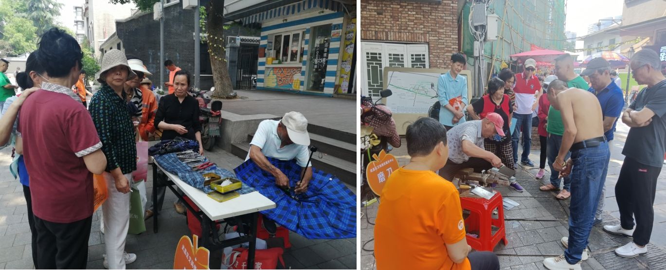 活动开始前,工作人员和志愿者们早早来到现场支起摊位,为即将开始的活动做好准备。不一会儿,一个个整齐的“摊位”已经全部准备就绪,丰富多彩的便民服务吸引了众多居民前来“捧场”。 便民服务在距离上做“减法”,在服务上做“加法”。活动繁忙而有序,各项服务一应俱全。修伞摊位上,专业的修伞师傅耐心细致地为居民修理每一把伞,无论是断裂的伞骨还是损坏的伞面,在他们灵巧的手中都重获新生;“工欲善其事,必先利其器”,磨刀师傅的摊位前排起了长队,一把把钝刀经过师傅的精心打磨,变得锋利无比,让居民们在家中的烹饪更加得心应手;专业的理发师以精湛的手艺为居民提供免费理发服务,无论是老人还是小孩,在这里都能焕发出新的面貌,笑容满面地离开;缝纫摊位上,心灵手巧的阿姨们飞针走线,为居民修补衣物、修改尺寸,每一件衣物的修复,都承载着对美好生活的期许和对传统手艺的传承。活动现场温馨热闹,工作人员和志愿者们耐心又专业,获得居民一致好评。