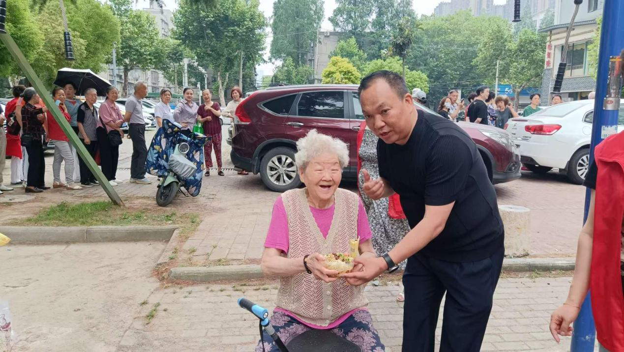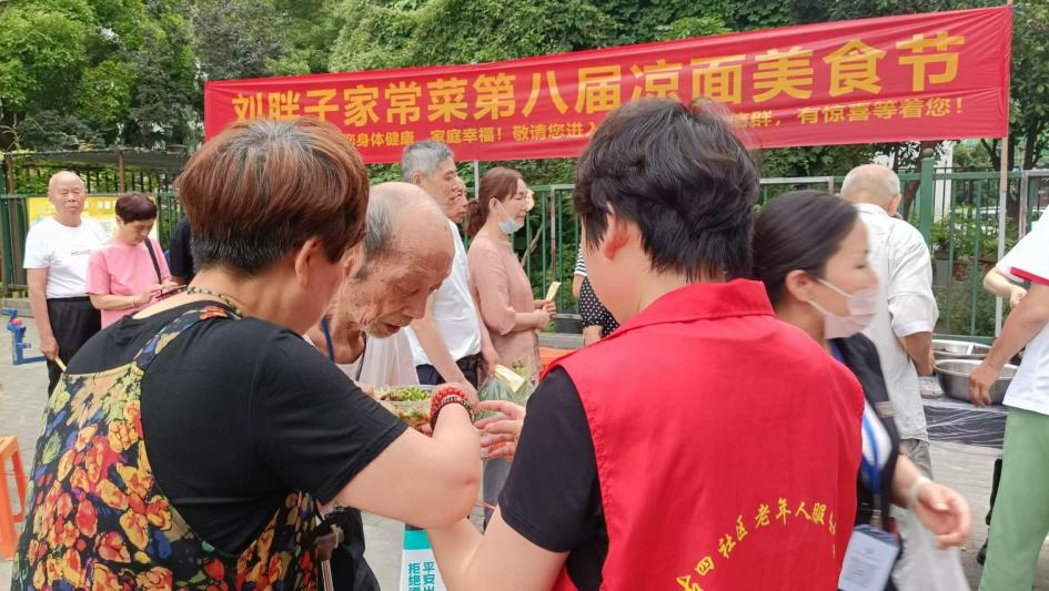 这里的凉面节有“温情”。尊老、爱老、敬老是中华民族的传统美德,今天的活动还涌现了不少温情场面。社区还为高龄老人开通了直接领取的“特别通道”,八十多岁的失明奶奶优先吃上了一碗凉面。活动结束后,志愿者们专程上门为独居老人等送去了凉面和清酒,令老人们感激不已。夏爹爹的女儿感激地说:“我的父亲是烈士家属,年初你们上门帮他年审,今天又来送凉面,我们真的很感恩!” 欢乐凉面节,邻里一家亲。本次邻里凉面节共向居民朋友们送出五百多碗凉面。“明天我们还要在其他小区送凉面,活动还会坚持办下去!”爱心企业负责人开心地向大家承诺着。