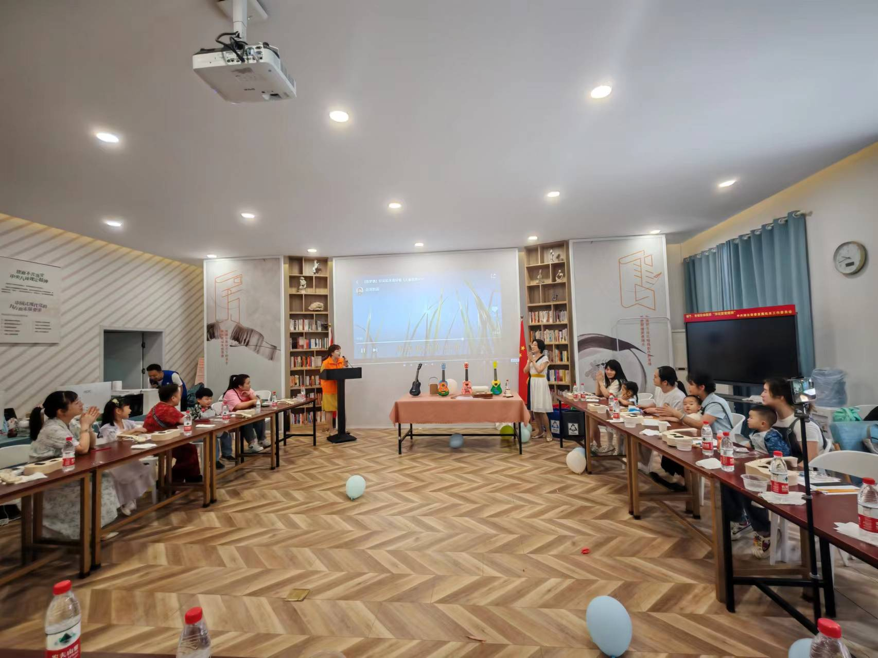 “你笑起来真好看,像春天的花一样,把所有的烦恼所有的忧愁,统统都吹散……”活动伊始,志愿者老师通过欢快的暖场歌曲破冰,营造轻松的现场氛围,调动了孩子们参与活动积极性。亲子手工制作环节,志愿者老师向大家讲解了尤克里里这一乐器的起源和发展,带领孩子们感受艺术魅力。随后在老师的指导下,大家组装拼接、粘合调试……将手中的尤克里里组装完成。孩子们还发挥自己的想象力,用画笔为自己的乐器涂上喜欢的图案和斑斓的色彩。