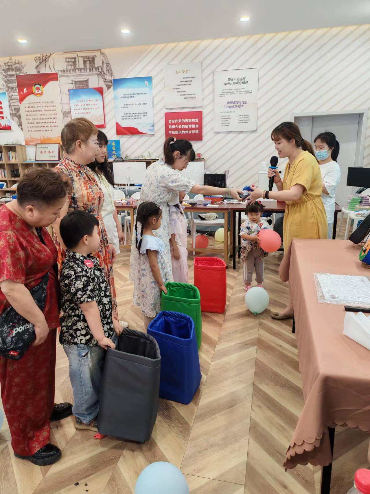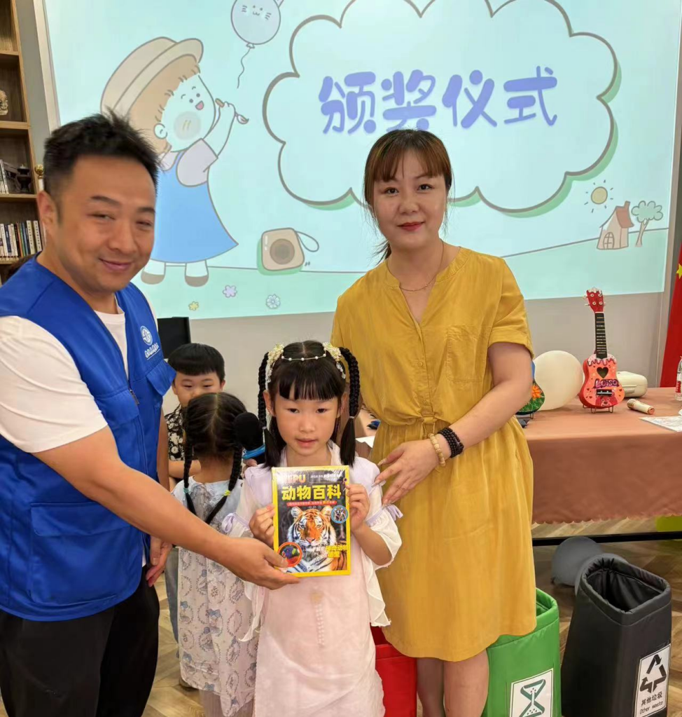 垃圾分类 环保“童”行 “小朋友们,你们知道垃圾分类有哪几类吗?”“灰色的放其他垃圾,绿色的放厨余垃圾,蓝色的放可回收垃圾,红色的放有害垃圾”为提高孩子们的环保意识、培养良好的垃圾分类的良好习惯,志愿者老师通过互问互答、游戏互动的方式,向孩子们分享垃圾分类的知识,引导孩子们将写有不同垃圾名称的沙包投入相应的垃圾桶中。“耶!投对了!我是垃圾分类小达人!”在欢乐的氛围中,孩子们一边玩、一边学,收获多多。