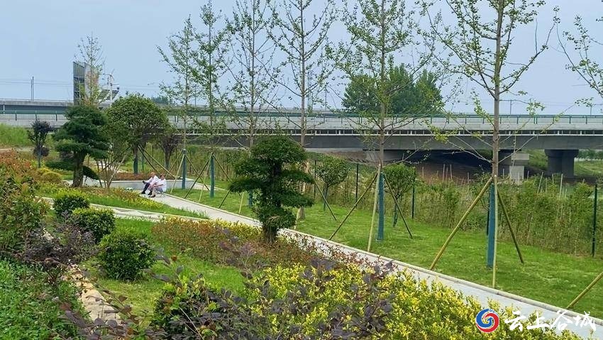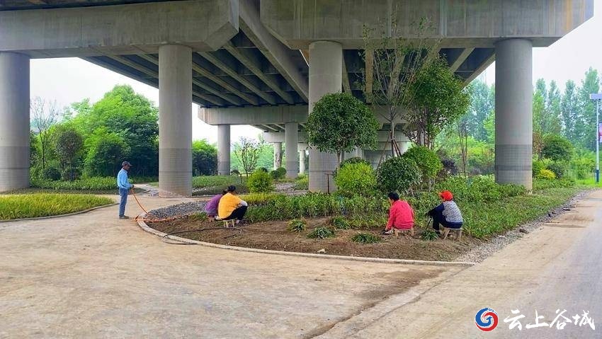 谷城汉江国家湿地公园是谷城人民引以为豪的绿色生态景点。在河谷大桥(谷城段)引桥下,工人们正在种植草坪、栽植苗木、铺设地砖,原本黄土飞扬的狭长边角地已焕然一新。