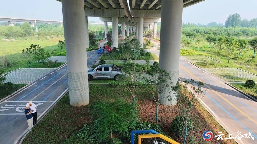 工程施工负责人李鸿介绍:“我们正在建设的是桥下空间绿化景观提升项目,总投资180万元。一期5000平方米已全部完工,二期10000平方米将在6月上旬建成,并新增了生态停车位。”