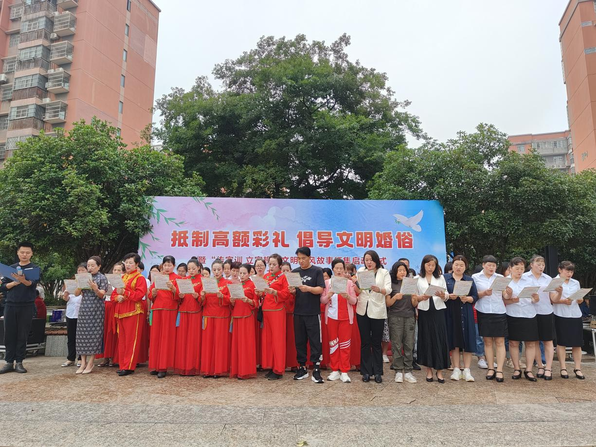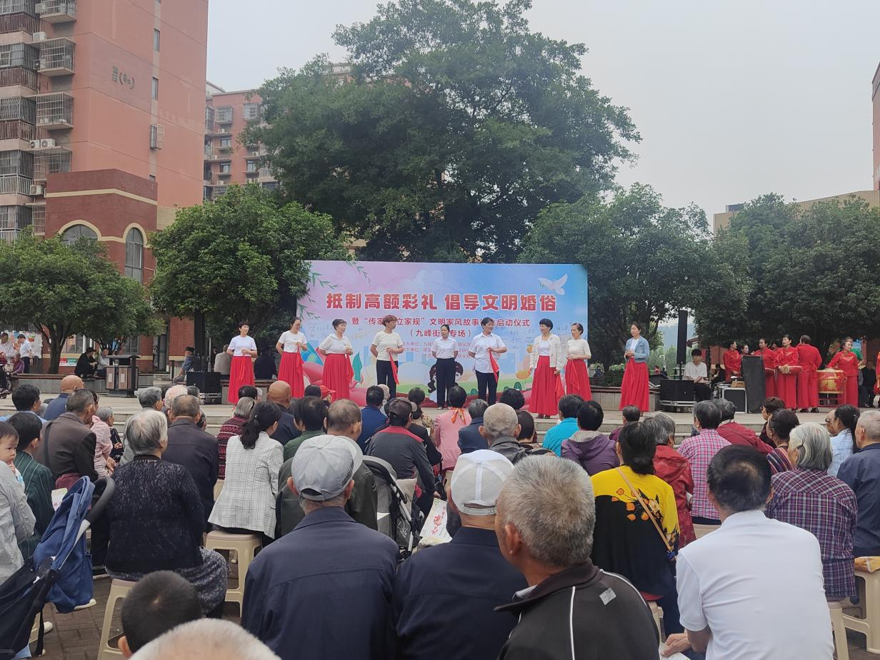 “文明婚俗要提倡……抵制彩礼新风尚……攀比之风不可长……齐心协力除陋习……”5月31日上午,在律动感十足的快板演出中,九峰街道新时代文明实践所宣传引导“抵制高额彩礼 倡导文明婚俗暨‘传家训 立家规’文明家风故事征集活动”正式拉开了帷幕。