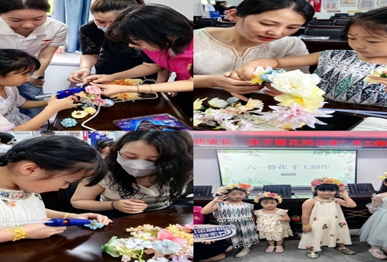 为丰富居民生活,提高居民家庭生活的乐趣和活力,2024年5月26日上午,在“六一”儿童节来临之际,泛悦城社区联合武汉西渡公益发展中心志愿者精心策划并举办了一场别开生面的非遗簪花亲子活动。
