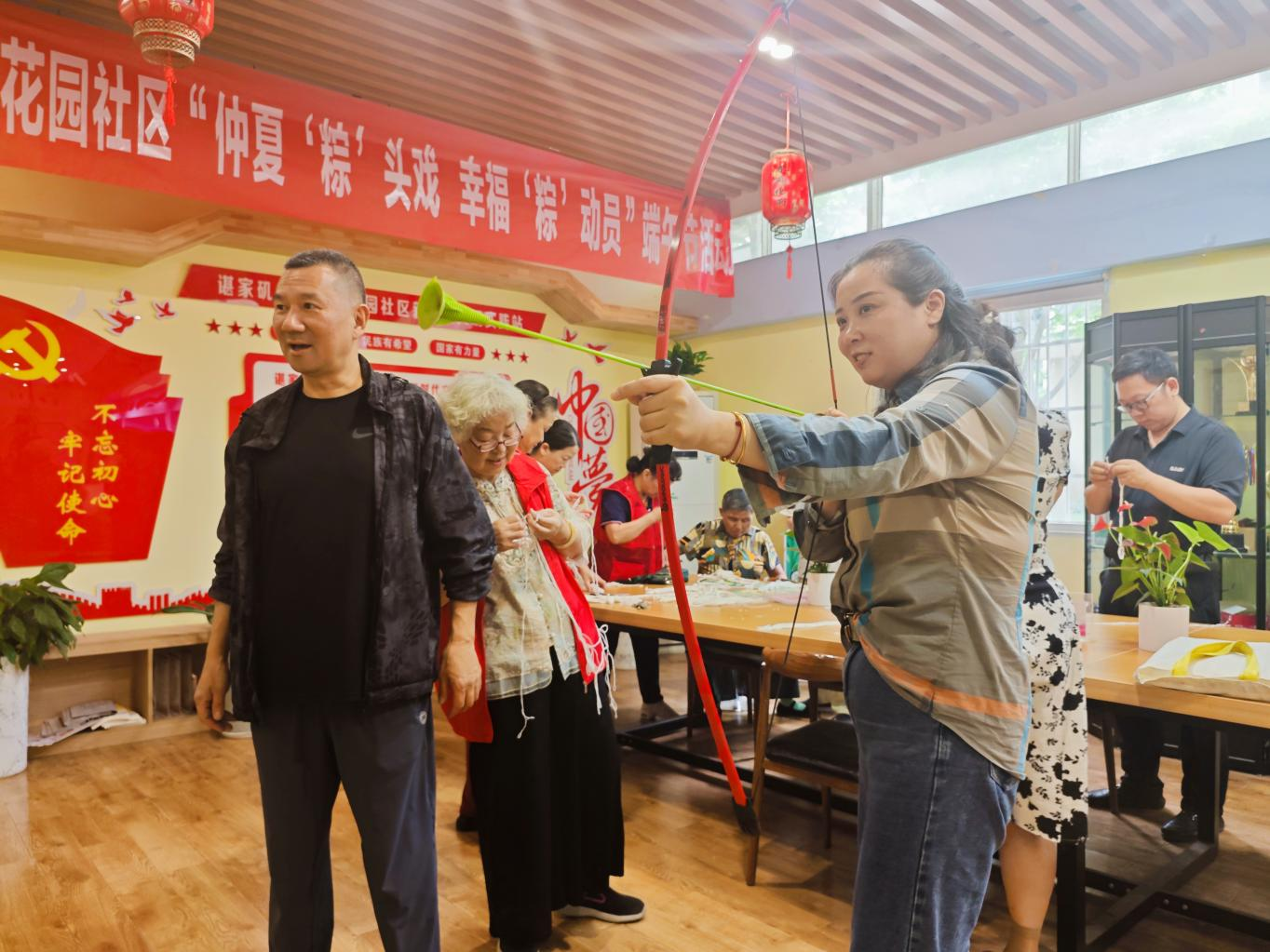 趣味射五毒、做香囊、包粽子......这是武汉长江新区谌家矶街道天兴花园社区“仲夏‘粽’头戏,幸福‘粽’动员”端午节活动上的有趣环节,让居民朋友们在传统节日里“粽”情欢乐。