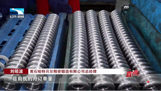 黄石哈特贝尔精密锻造有限公司总经理 刘昭波:“我们厂区现在有24条线在运行,24小时运行,目前我的月订单量是我月产能的150%在跑,处于一个一直是加工不完的状况。”