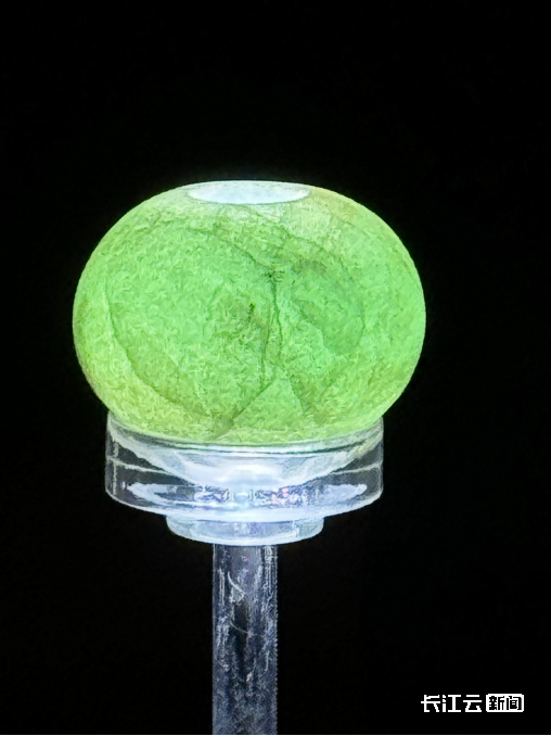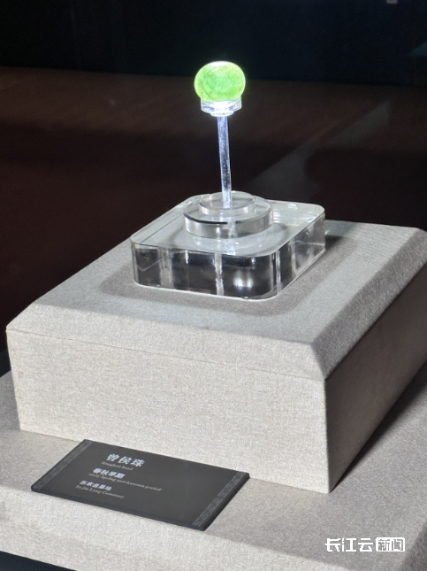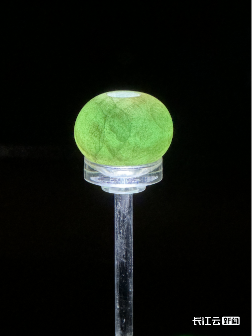 这是春秋早期的随侯珠。玉珠形状圆润,玉璧质地细腻,色泽温润,体现了古人精湛的玉石加工工艺。“随和之宝”一词正是随侯珠与和氏璧的并称。东晋《搜神记》中记载了一篇关于随侯珠的传说。传说随侯出行路上救治一条大蛇,一年后随侯再次出行,梦到大蛇变成白衣少年为报答救命之恩特意献上一颗宝珠,醒来后,随侯在身边找到了这颗宝珠,此珠白天洁白莹润,夜晚光彩夺目,被随侯视为珍宝。
