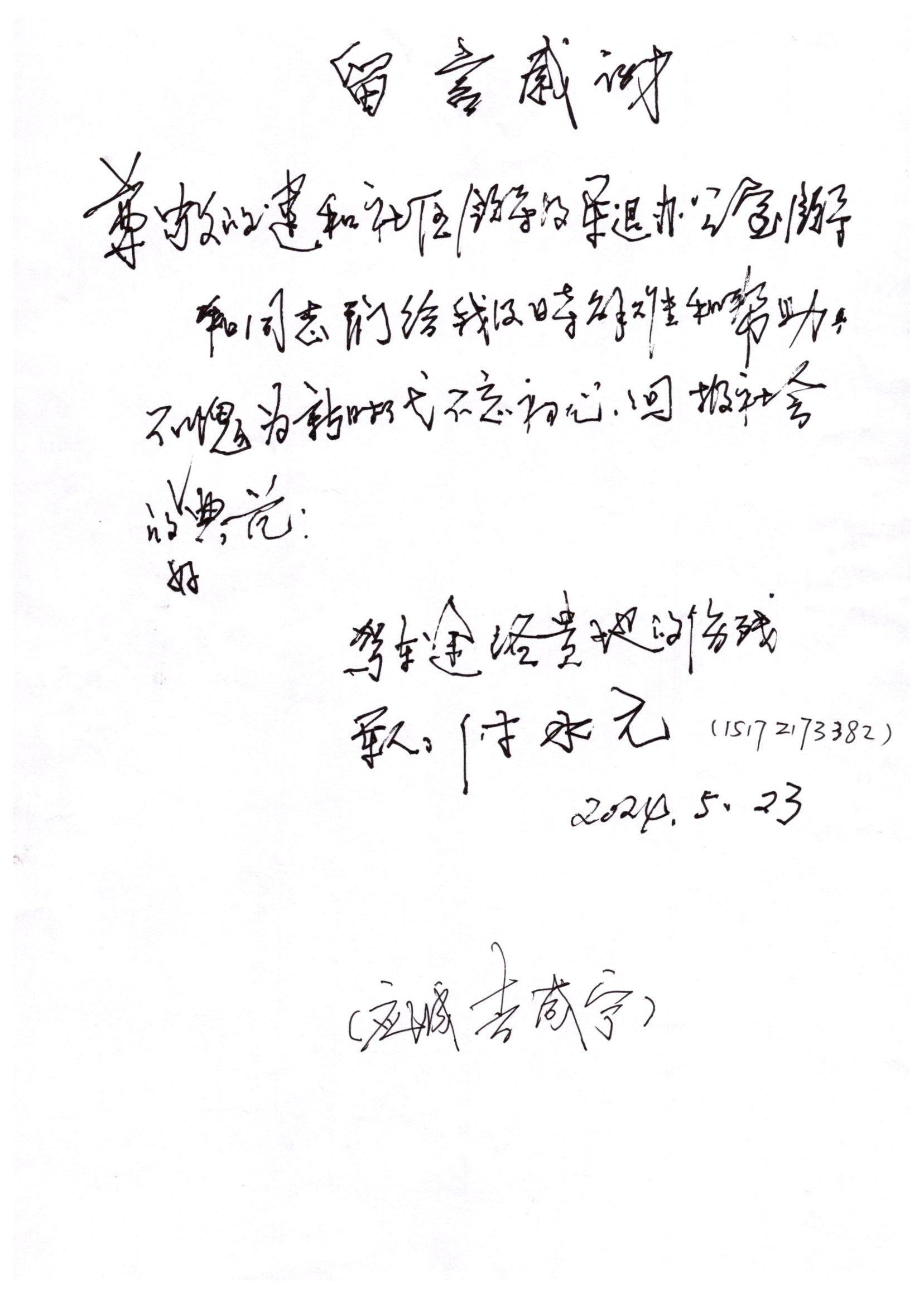 这名伤残军人在电动车充好电后离开了社区,在这之前他留下了一封感谢信给建和社区。服务人民群众是社区的职责所在,这封感谢信也让建和社区的工作人员充满动力继续为群众服务。