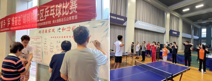 为丰富社区居民文化生活,持续推动社区居民养成健身习惯,厚植文化精神,深入推进“共同缔造”走深走细,武汉市洪山区关山邮科院社区于6月5日上午,联合武汉西渡公益发展中心、中信科集团人力资源部、武汉烽火创新谷管理有限公司、武汉风韵出行信息科技有限公司、中国联合网络通信有限公司武汉市分公司、武汉体育学院体育教育学院和烽火创新谷丘山体育馆开展“强强‘廉’手·‘乒’搏奋进”乒乓球比赛活动。