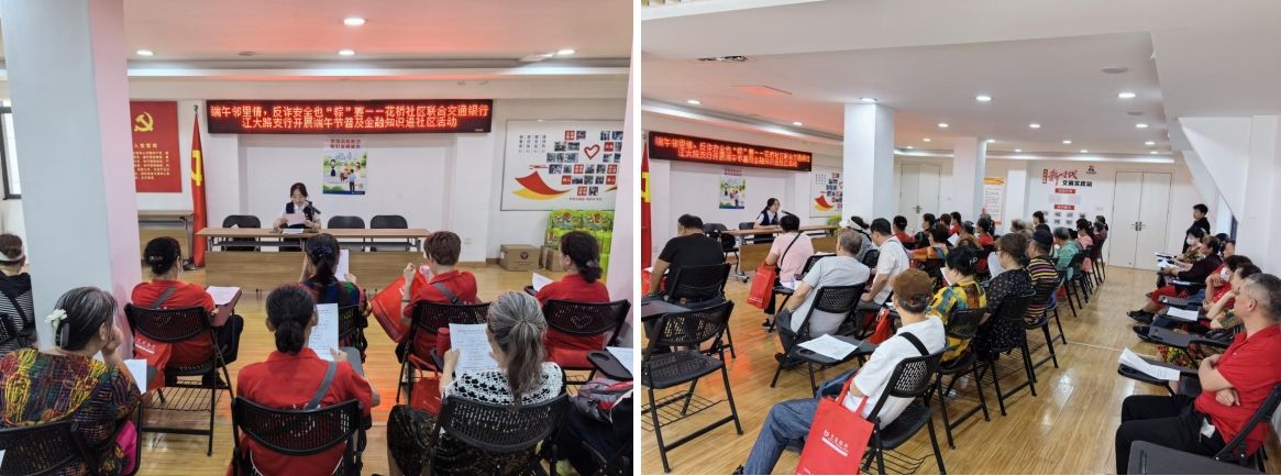 端午临近,粽叶飘香。为进一步弘扬中华民族传统节日文化,同时增强居民抵御电信网络诈骗能力,6月7日,武汉市江岸区花桥街道花桥社区联合交通银行江大路支行开展“端午邻里情,反诈安全也“粽”要”普及金融知识进社区活动,积极践行“金融为民、金融利民、金融惠民、金融安民”的服务理念,倾力捂牢群众“钱袋子”。