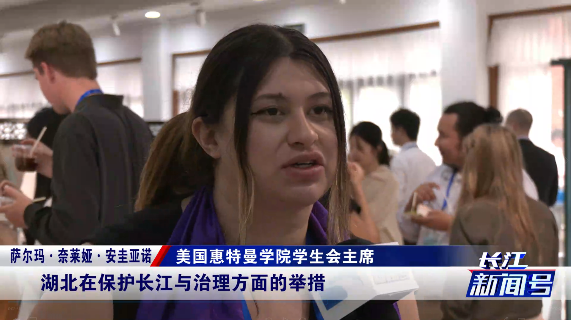 美国惠特曼学院学生会主席萨尔玛·奈莱娅·安圭亚诺 :“在刚刚的会议中,中方代表介绍湖北在保护长江与治理方面的举措,让我觉得非常了不起。今天上午我们实地探访了武汉江滩,亲眼见证了江滩的绿色生态发展,长江和密西西比河是中美两国各自的母亲河,我们可以学习湖北的水治理经验。”