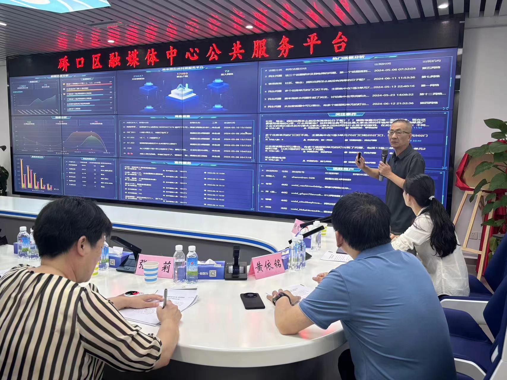 代表、委员一行来到区融媒体中心后,区融媒体中心主要负责人详细介绍“智微”公共服务平台服务功能和运行情况。硚口区融媒体中心“智微”公共服务平台,自2023年10月上线以来,受到了区领导的高度重视和各街道社区居民群众的一致认可。目前,服务覆盖辖区11条街道和各社区,服务居民群众近19万户。该平台主要通过AI智能提供四大民生服务:一是政务信息服务,建立政务服务信息问答库,可通过线上对话给予快速正向反馈,让居民群众办事更为高效和便捷;二是正面新闻宣传,充分发挥智微服务平台高效的宣传推送功能,不定时向社区网格群精准推送民生服务信息,更好打通服务群众“最后一公里”;三是热点舆论引导,第一时间收集了解民生热点问题,解决社会矛盾;四是安全隐患预警,实时了解社情民意,若遇突发紧急情况,居民群众可通过平台直接进行呼叫,快速排查处置安全隐患和风险点,保障人民群众的生命财产安全。