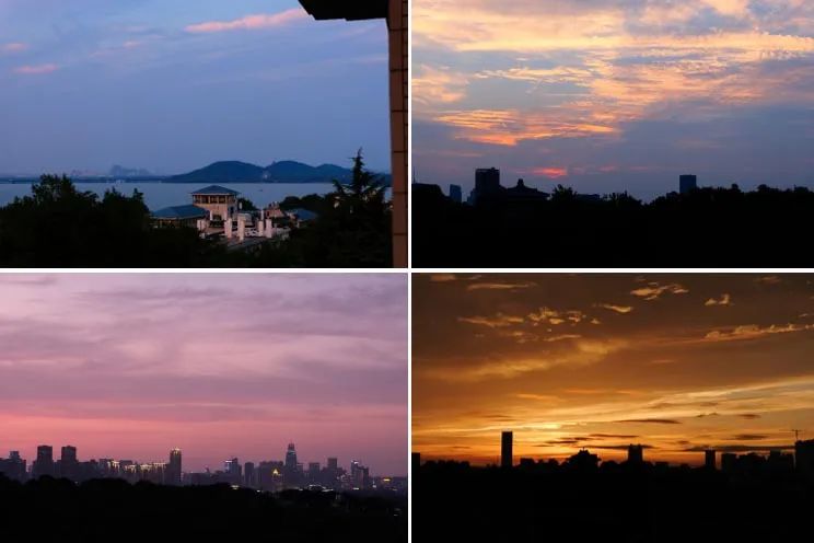 网友@上古飞天大凤梨在武大宿舍拍下的风景。左上为2020年9月入住第一天拍摄;右上为2021年6月拍摄;左下为2022年6月拍摄;右下为2023年6月拍摄。