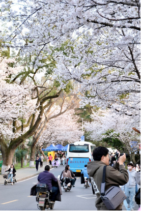 “冬天腊梅花,夏天石榴花,晴天都是人,雨天都是伢。”《汉阳门花园》中的这句歌词就是我在珞珈山生活的真实写照。在武汉大学的湖景宿舍里,我感受到了每一个季节的独特魅力。春赏樱花烂漫,秋闻桂香四溢,夏见古木参天,冬观寒梅傲雪。每当樱花盛开时节,校园里热闹非凡。当我看到珞珈山如此蓬勃而绚烂时,心中总会涌起一股自豪与喜悦。