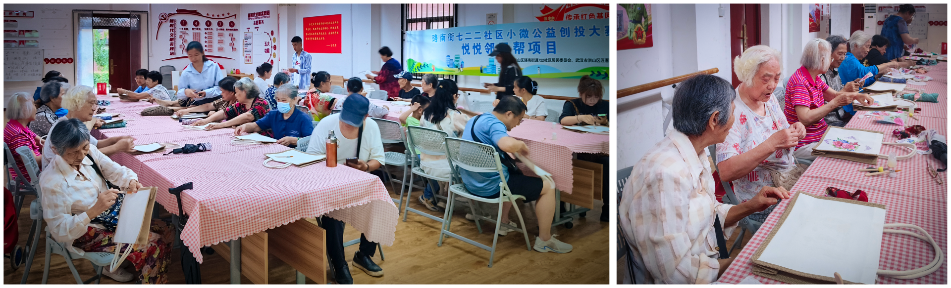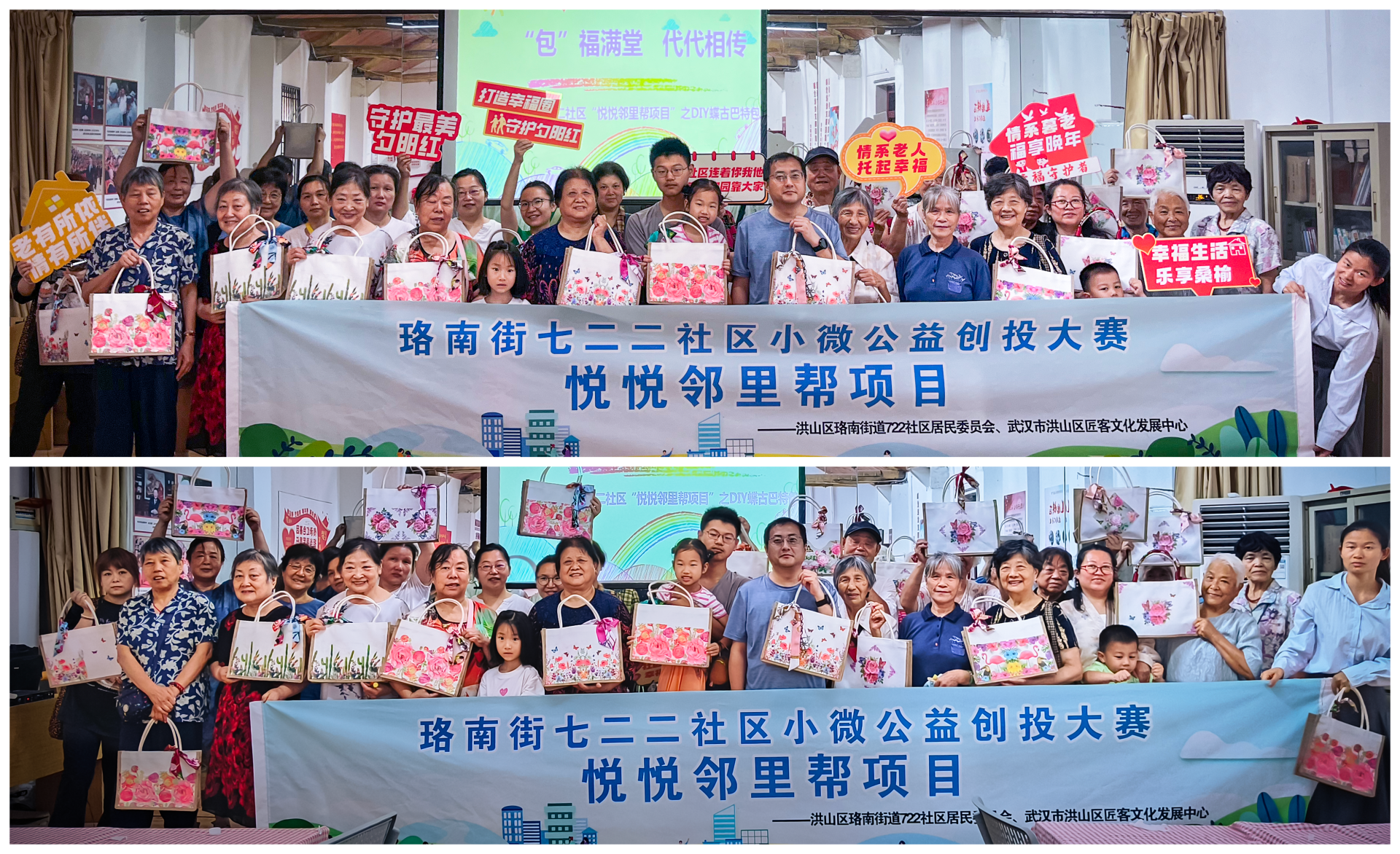 为致力于构筑邻里间的深情厚谊,在6月23日的清晨,七二二社区携手武汉市洪山区匠客文化发展中心,共同奏响了“悦悦邻里帮项目”的华彩乐章--"'包’福满堂代代相传”。这场文化创意手工活动,吸引了30余名老年人、亲子家庭及青年居民的热情参与,共同编织着社区的和谐与温馨。