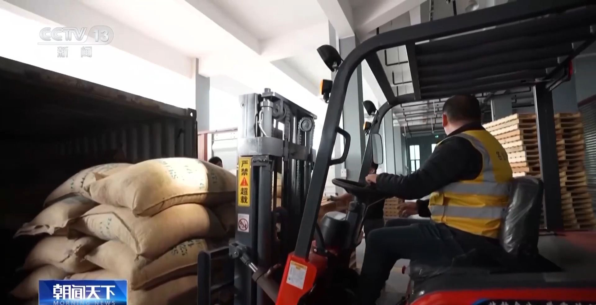 500米开外,早前投用的亚太咖啡生豆分拨中心里也是一片忙碌。工人师傅正在装卸一批从埃塞俄比亚原产地运来的咖啡豆,总重量达到56吨,这些咖啡豆随后被送到一个大仓库。