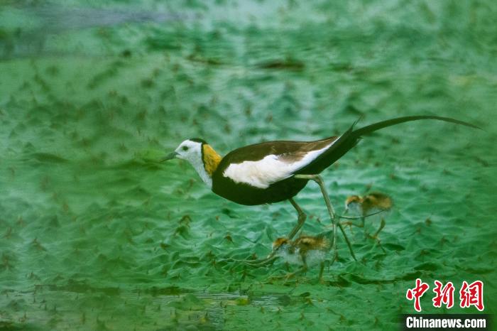 枝江金湖湿地公园规划的浮水植物种植区吸引了水雉在此繁殖育雏。舒仁庆 摄
