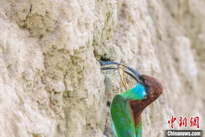 栖息于宜昌市夷陵区的蓝喉蜂虎正在哺育幼鸟。舒仁庆 摄