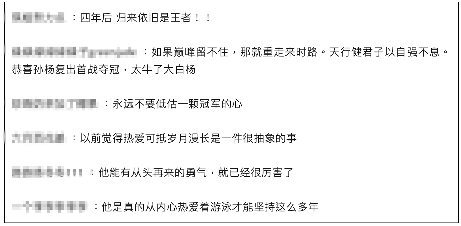 预赛结束后,孙杨接受了现场记者的采访,寥寥数语透出了他在禁赛几年来经受的艰辛和困难。孙杨的声音有些哽咽,情绪也比较激动,他说:“久违了,很久没有这样的感觉了,既熟悉又忐忑。游得和我预想的差不多,我的目标就是达标,主要还是先感受和享受比赛的氛围。