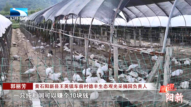 黄石阳新县王英镇车前村德丰生态观光采摘园负责人 郭丽芳:“在果园下面这个葡萄栽完之后,就可以养一批(屯鸟),一年的话可能可以养个二十多万只,一只纯利润可以赚个10块钱。”