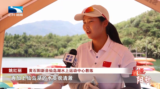 黄石阳新县仙岛湖水上运动中心教练 姚红丽:“比方说现在夏季比较热,再加上仙岛湖的水质很清澈,所以说大家都喜欢游泳或者跳水之类的话,小朋友在魔毯上面跑跳都很安全。”