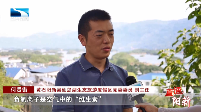 黄石阳新县仙岛湖生态旅游度假区党委委员、副主任 何贤锴:“负氧离子是空气中的‘维生素’,也是环境的清洁剂,可以调节人体机能、消除疲劳、促进睡眠,游客到王英镇来之后,可以感受到一种放松的心态。”