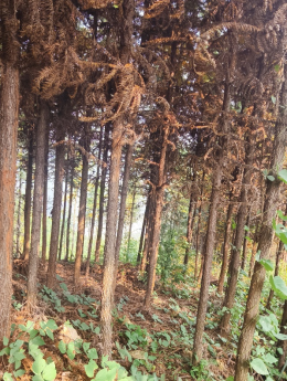 “1997年的时候又发了一场大火,把山全部烧了,从一头到这一头,全烧了。好不容易栽下的七八亩树,付之一炬。再后来,我更加小心翼翼,每一株我都用一个薄膜罩住,以防发芽的时候打药会伤害到它。结果新栽的树也没逃过火的‘魔咒’,还是毁掉了。”