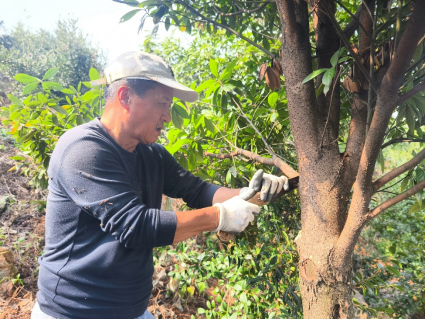 “只种树不管树是不行的。油茶马上就要收获了,收完果子就得剪枝,底下的树枝全都要剪,这样树势才能挺拔向上。”见到刘志刚时是下午两点,他正拿着把锯子在修理一棵金丝楠木的树枝。
