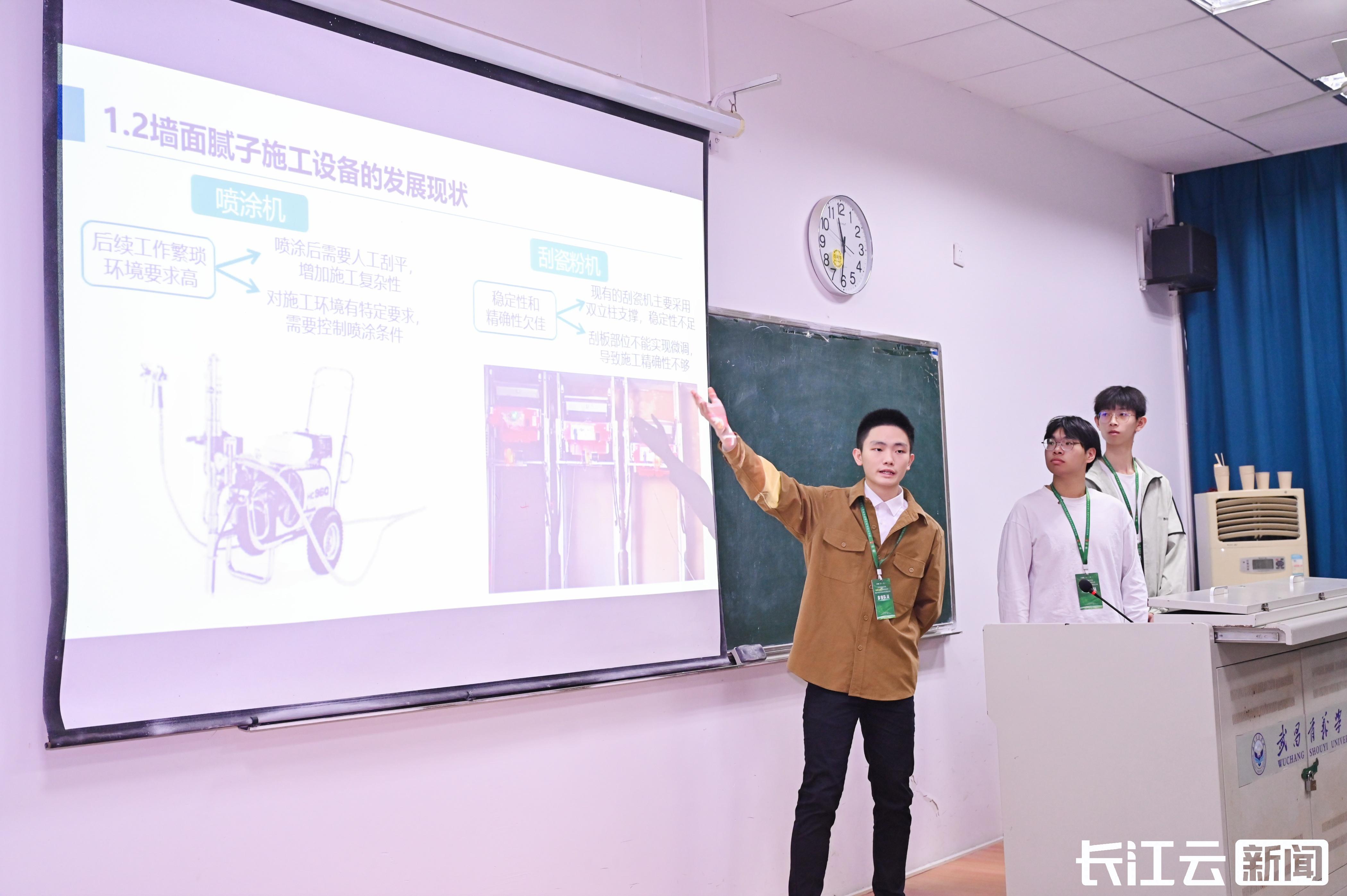 其中,东道主武昌首义学院有6支参赛队晋级决赛。该校机电专业李响同学介绍:“我们设计的这款基于柔性机械臂的自适应灌木修剪机器人,是为解决传统园林绿化建设过程中修剪质量参差不齐、危险性较高、人力消耗大等问题,柔性机械臂可以按用户需求进行形态定向化修剪,圆形、椭圆形等形状都可以实现。我们也专门加设了空间调整机构,使机器在修剪时灵活应对高矮形状各异的灌木丛,实现高效修剪作业。”他说,在整个设计过程中,小组成员多次调研城市公园绿化灌木,多次测量灌木尺寸,并根据数据反复实验才确定出极限尺寸机械臂螺旋桨,精确计算出机械臂修剪的精准范围。小组以此为基础,层层叠加机器人职能。
